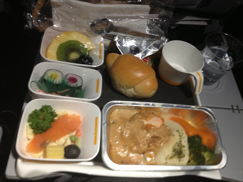 機内食 ビーフ or チキン 今日のメニューでは、個人的にチキンが美味しかったです。