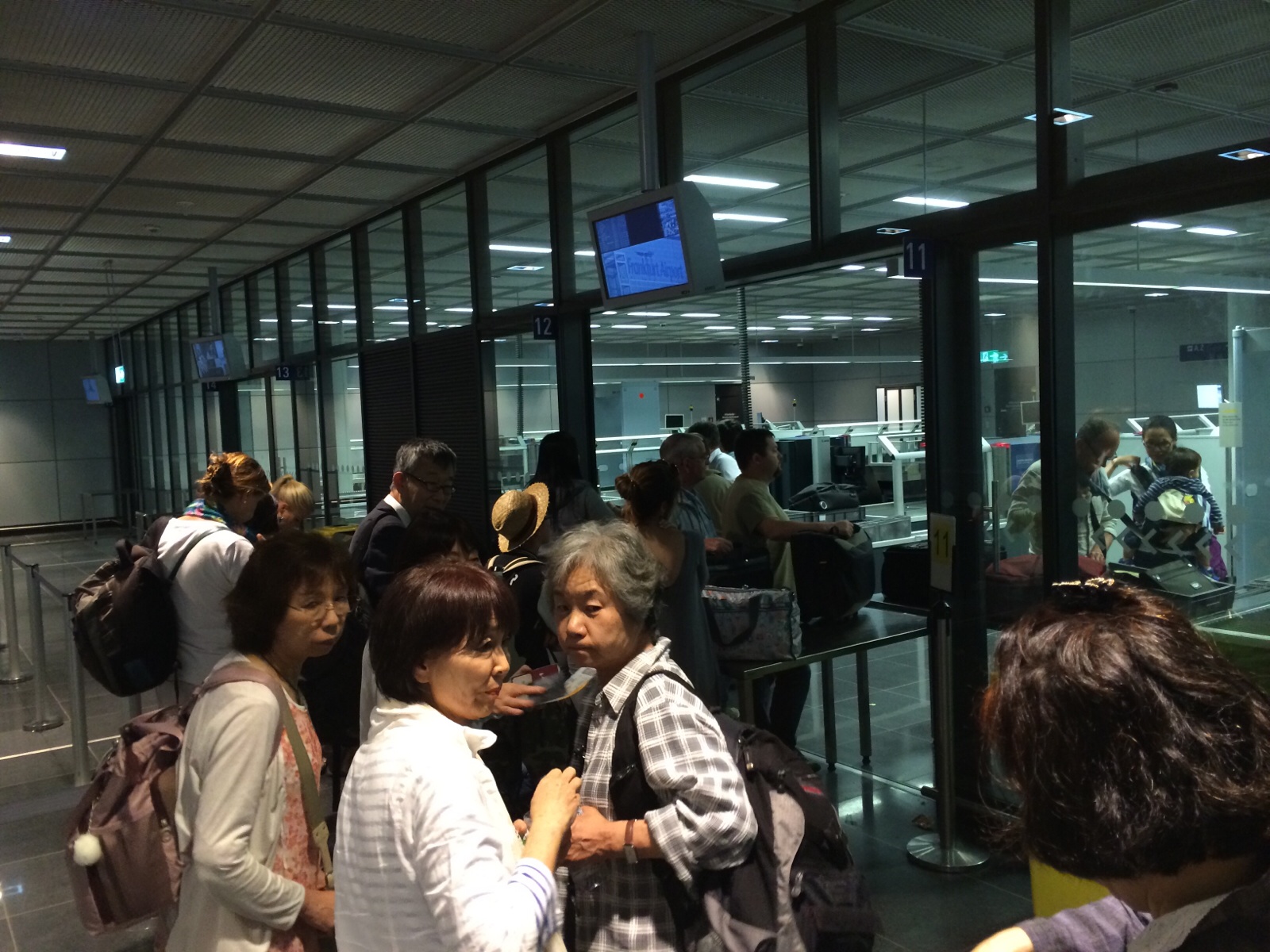 荷物検査を終了し、集合しています。ヨハネ兄もスムーズに 通過