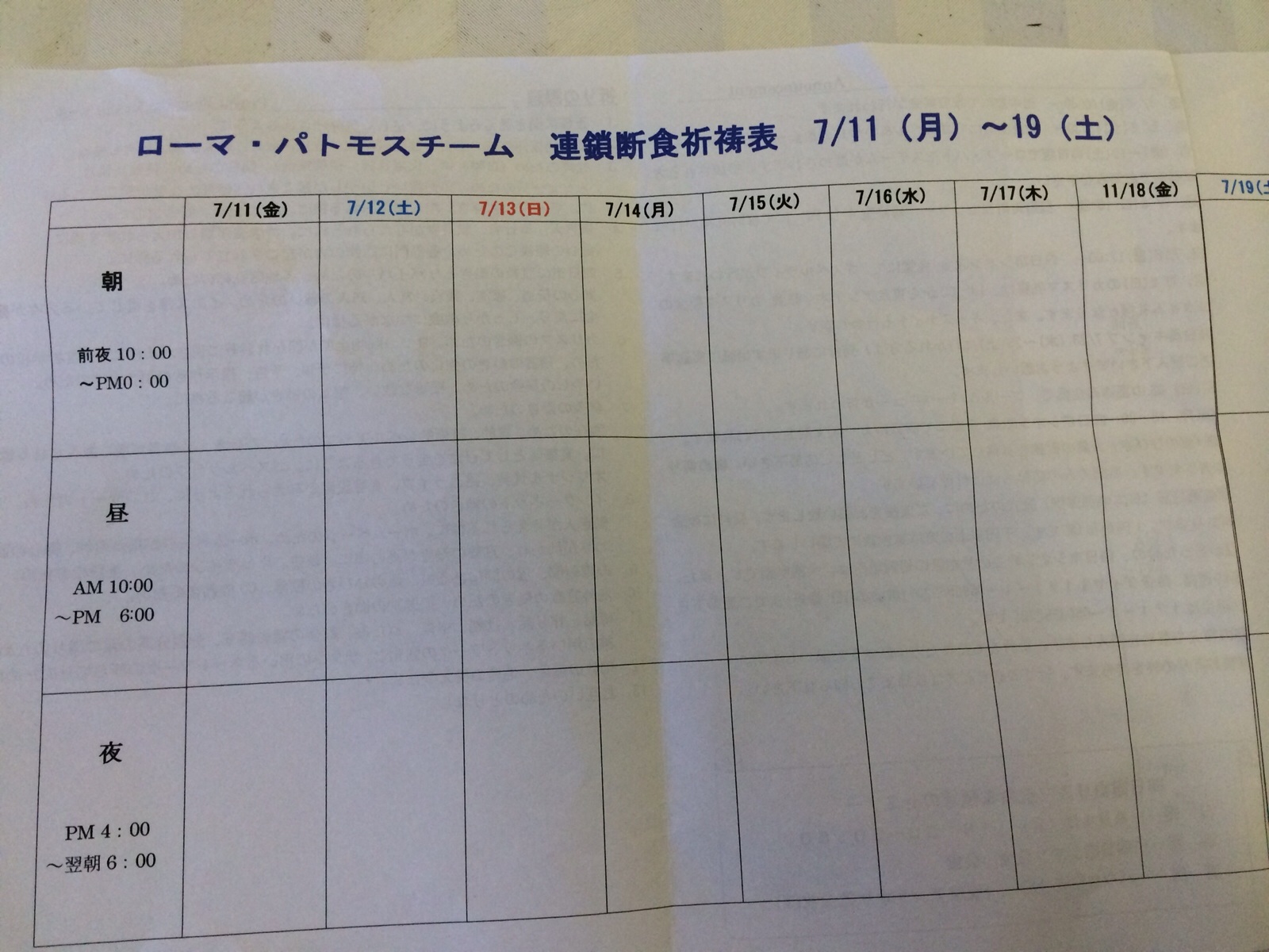 連鎖断食祈祷表に、皆さん、次々に名前を〜 よろしくお願いしま〜す‼︎