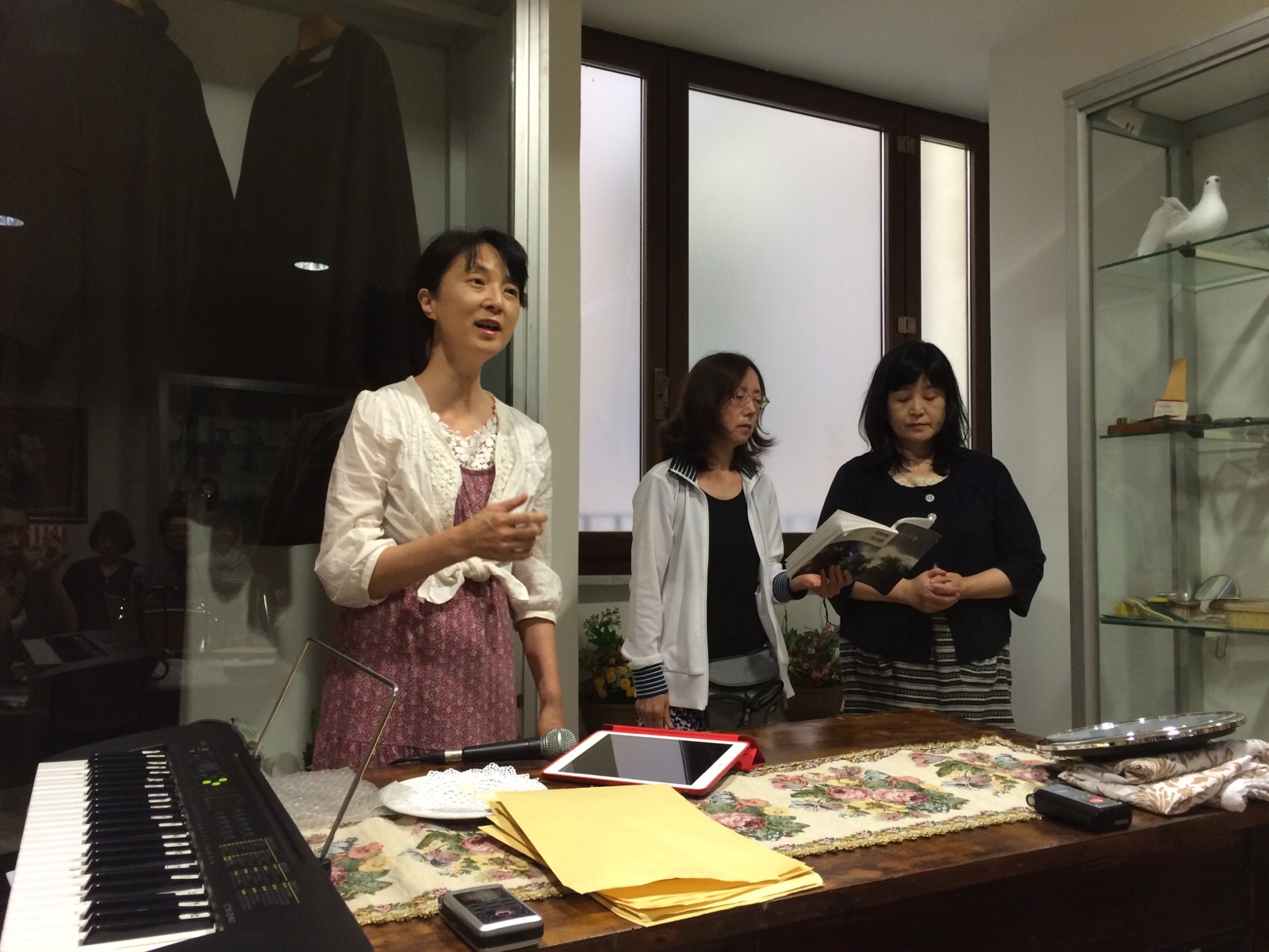 エウカリティアス ♪「イエスわが救い」の賛美がなされました。録音機から音楽が流れています。