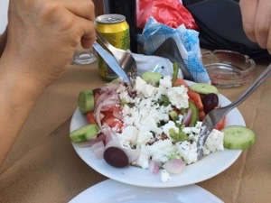We always eat here. It’s a blessing. We are having Greek salad now. D