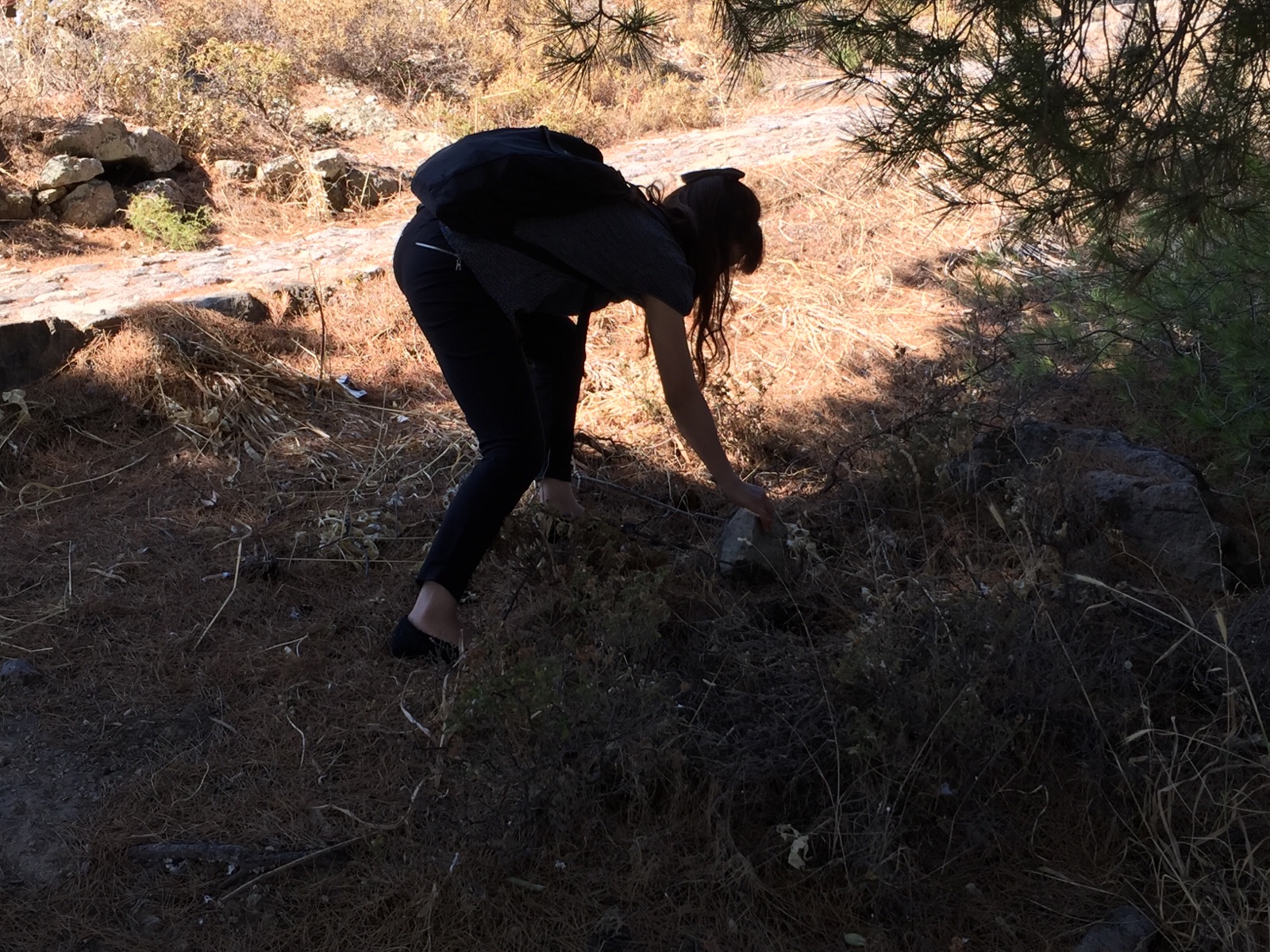 風が強いので紙を止める石をさがしているしょうこちゃん(o^^o)
