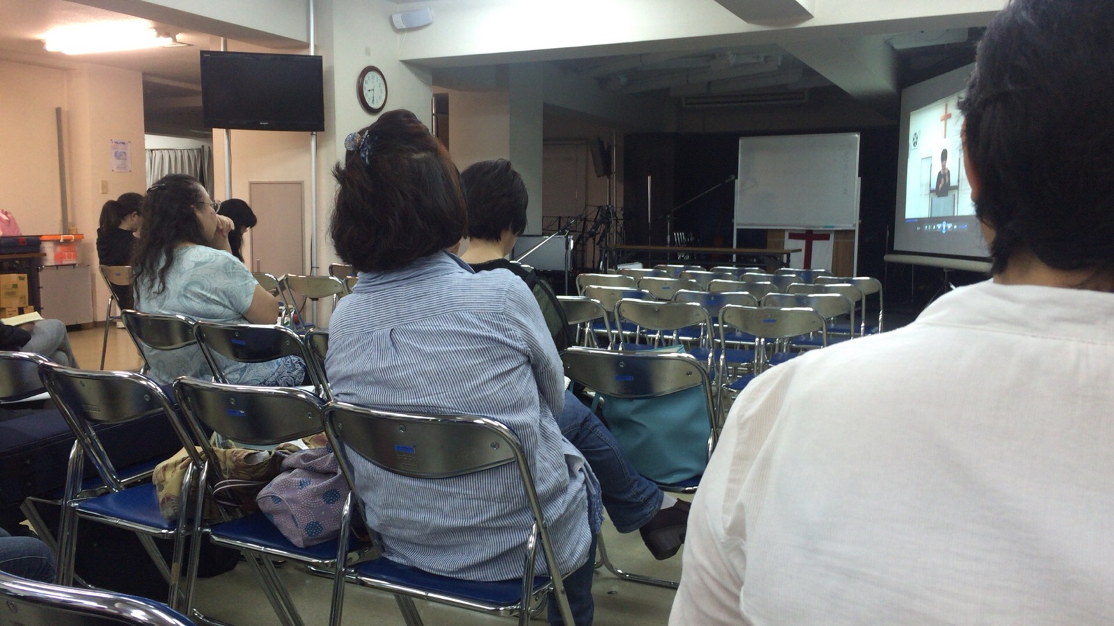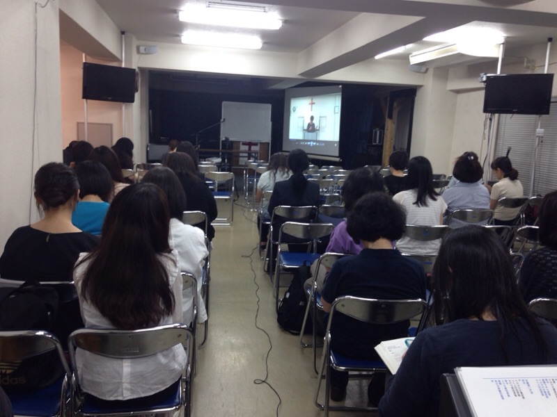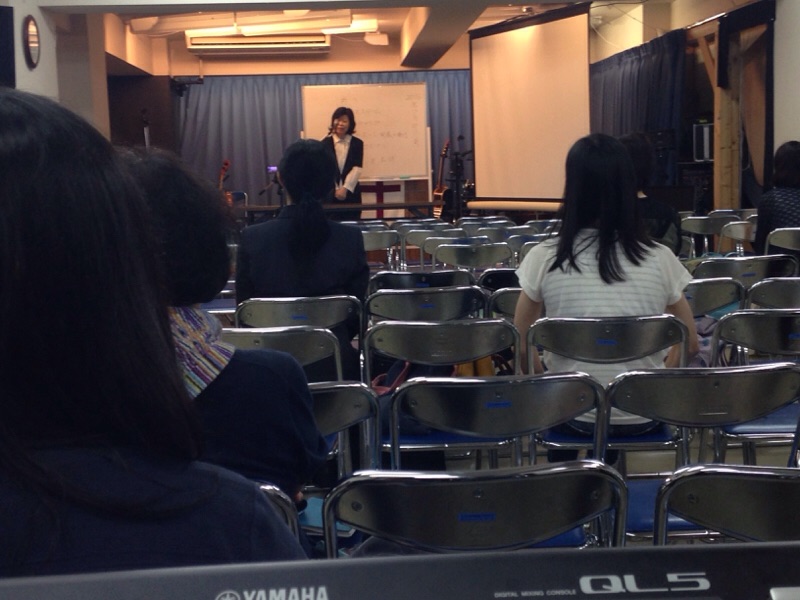 後ろ姿ですが…、頌子さんもしっかりメッセージを聞いておられます! ミッションスタッフ
