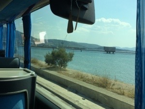 パトモス島へ行くためにピレウス港から大型フェリーに乗ります。エーゲ海沿いを走ります。D