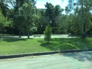 走る道沿いには緑が綺麗な公園がありました、街を通り抜けます D