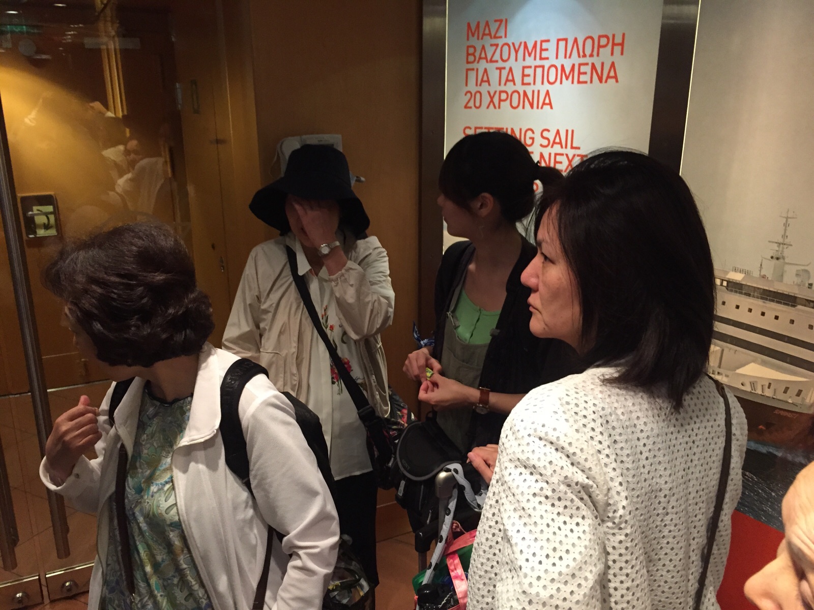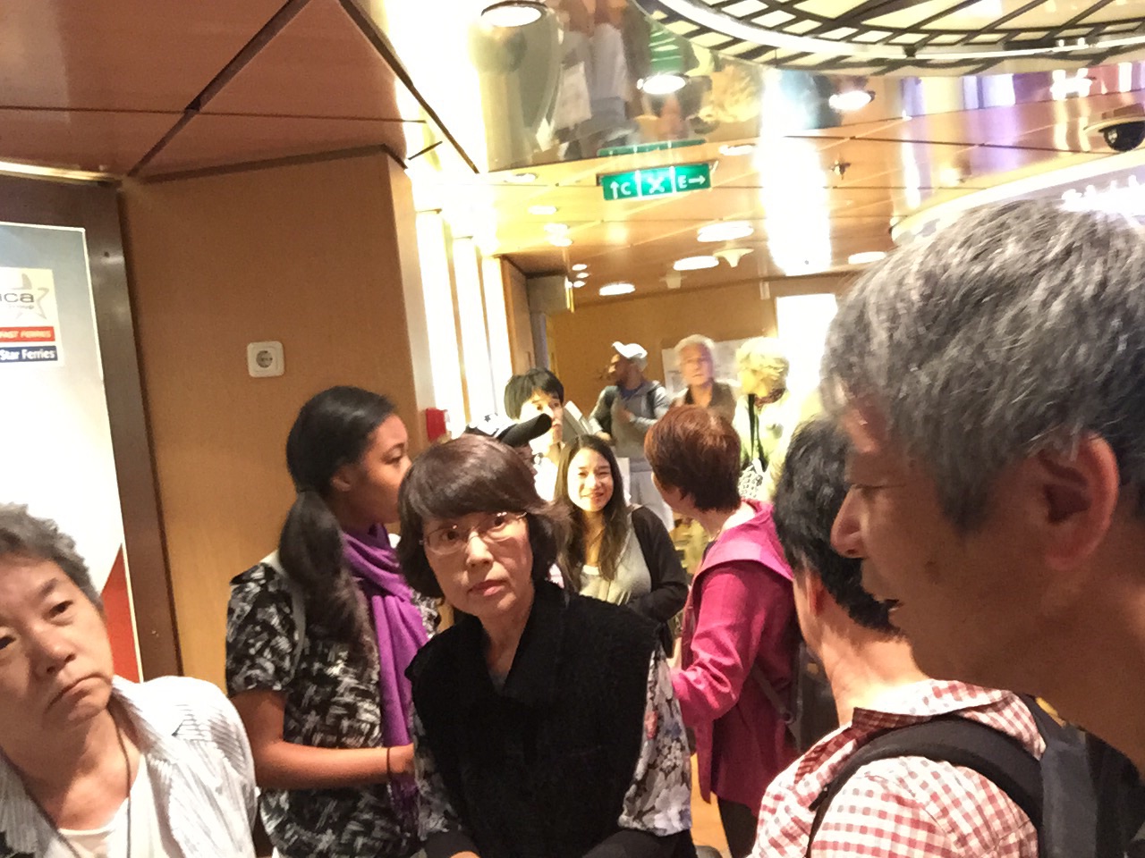 全員集まっています(^-^) エスカレーターの下が混んでいるそうなので、待っています。