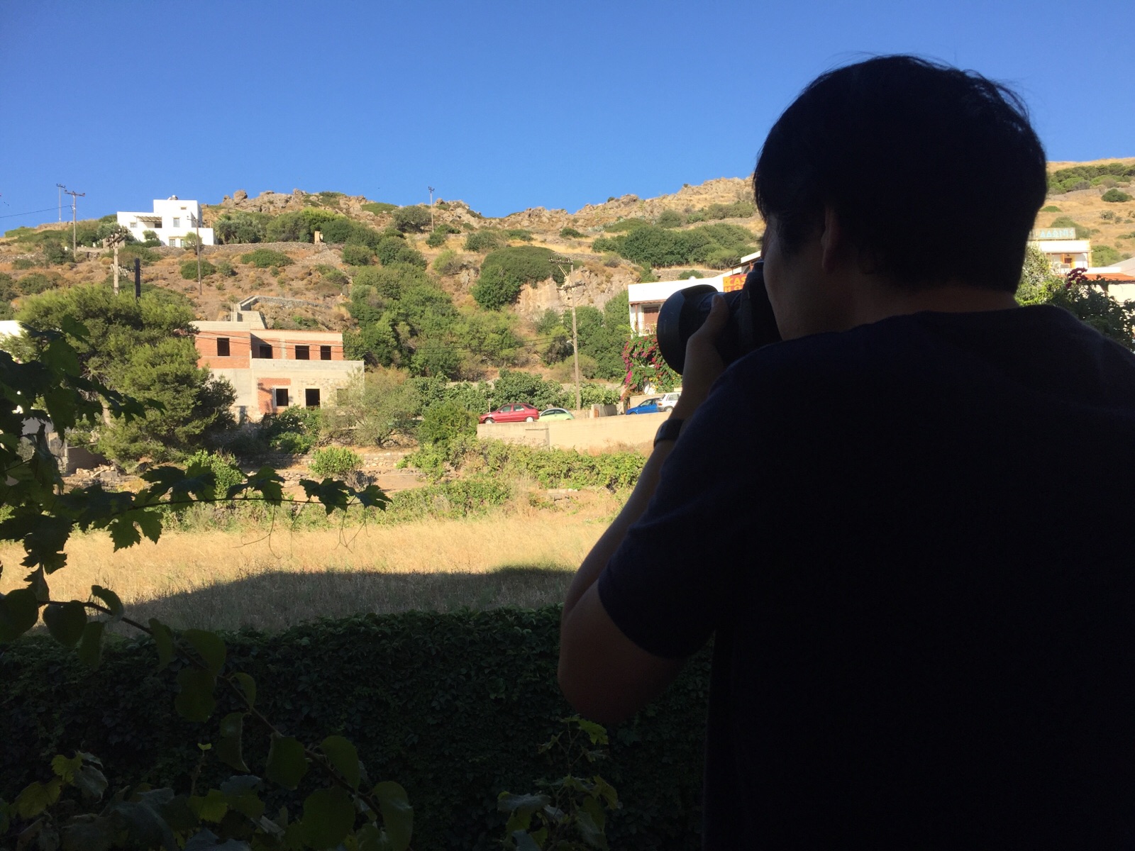 He is taking a video footage at a veranda (^-^)