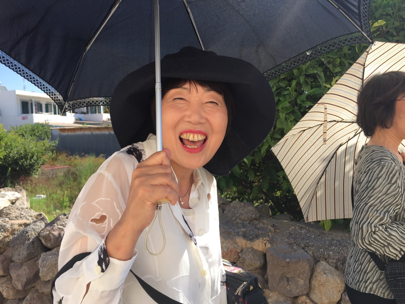 日傘は必需品です(^-^) タクシー組みと歩き組と分かれています!