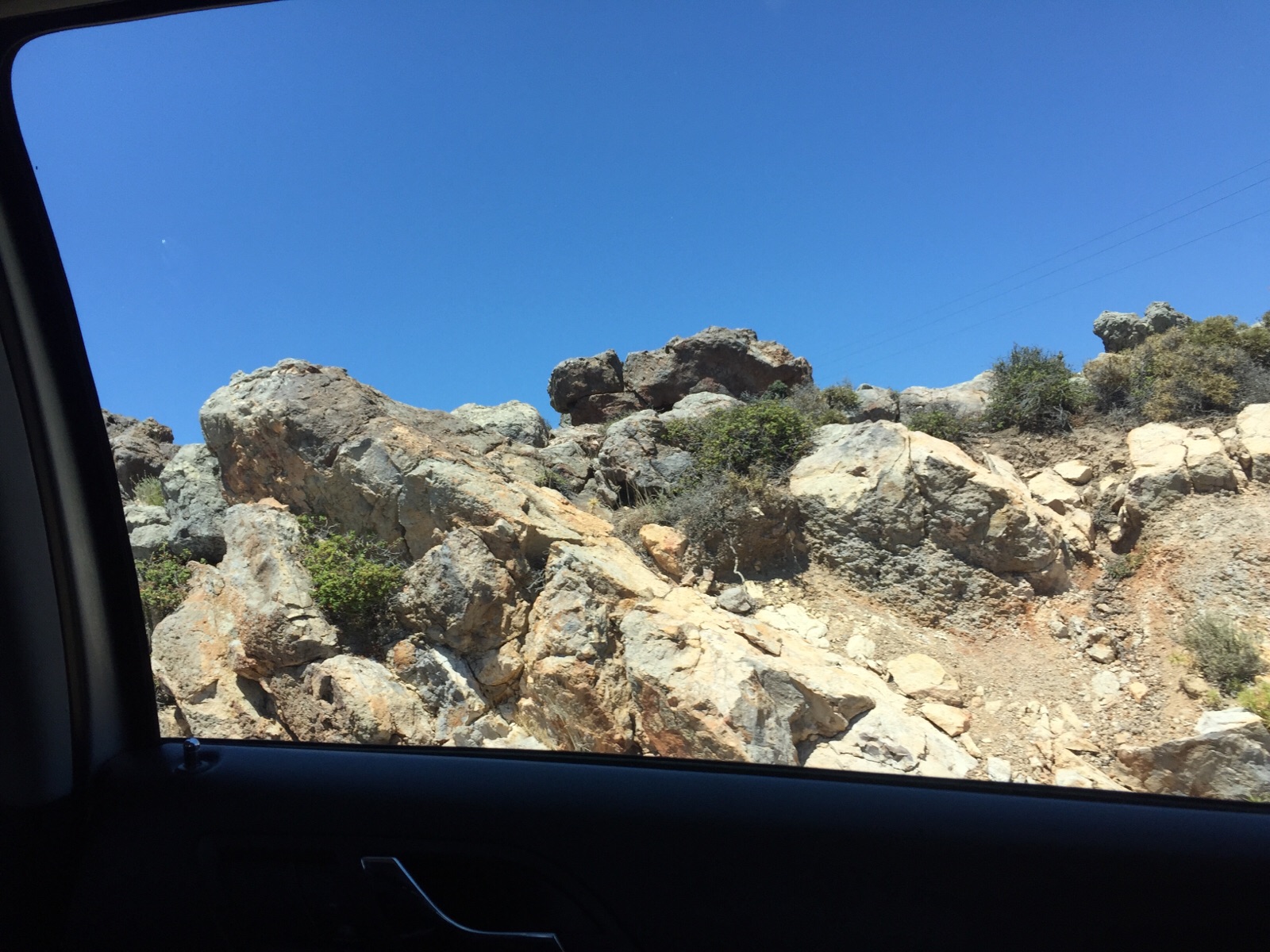 Our car is moving speedy on gravel road. lol We’re in the other side of Patmos!