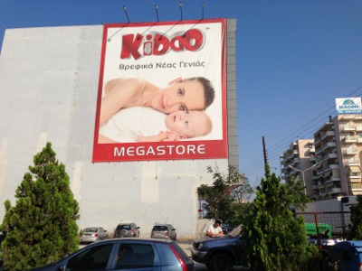 テサロニケのホテルの横のビルにあった看板。