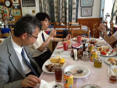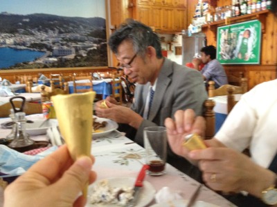 アイスを食べている時も、東京アンテオケ教会の第七礼拝の中継を見ておられます、パウロ秋元牧師。