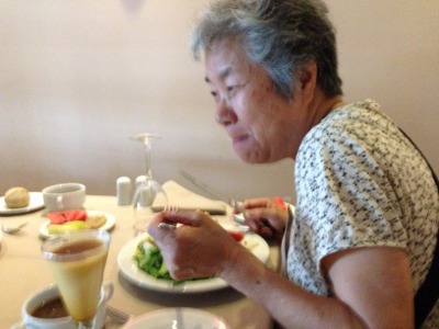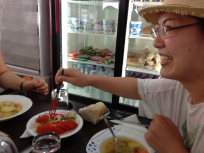じゃがいもスープ、サラダ、チキン、スイカを頂きました!