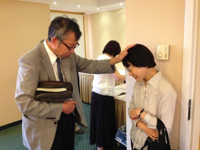 聖会後、チームメンバーが次々と癒しの祈りを受けていました。