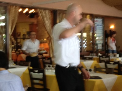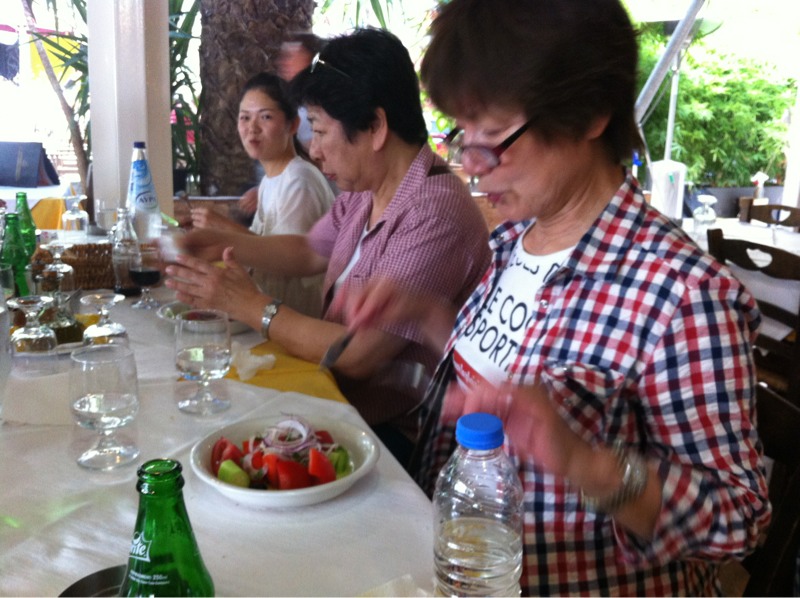 スキンヘッドのボーイさんへ、 サラダを長老に先にと、いったら 「レディファースト」と叫ばれました、あっそ。