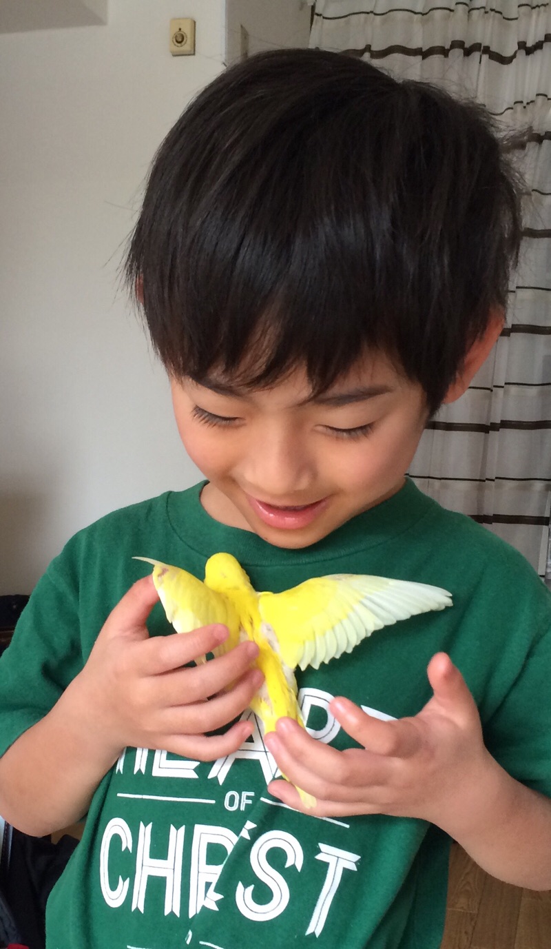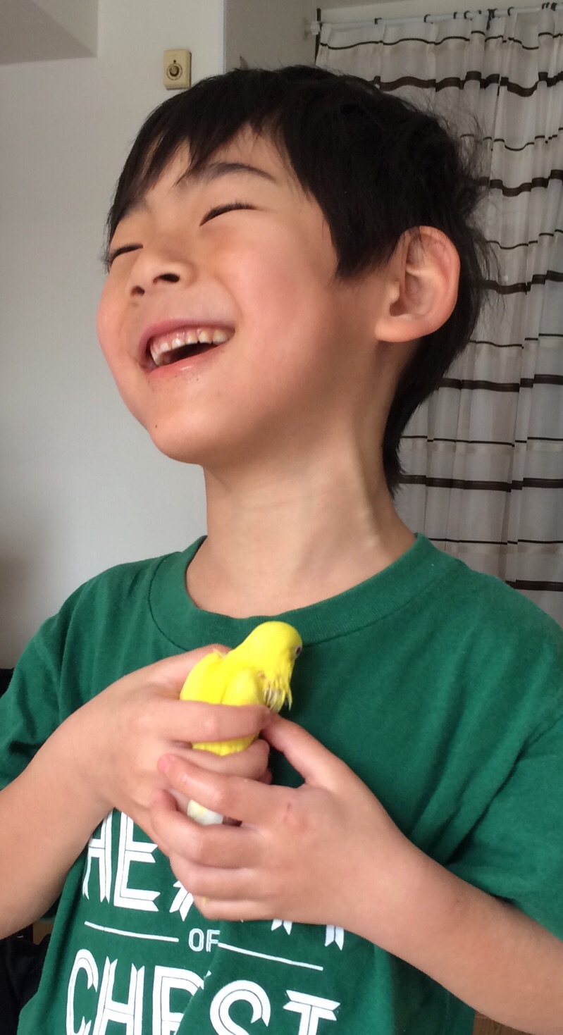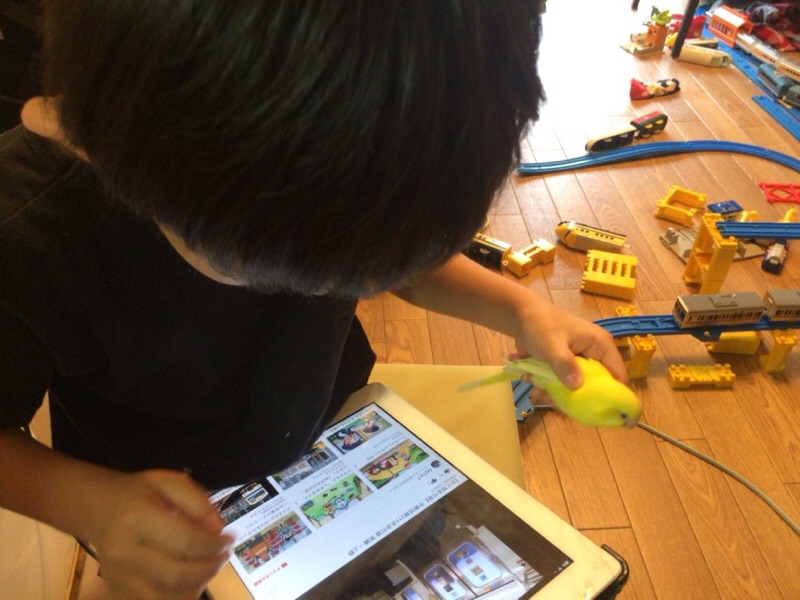 息子は、いつもルチノーインコのレモンちゃんを握りながら、youtubeを一緒に見てました!! 三本松家