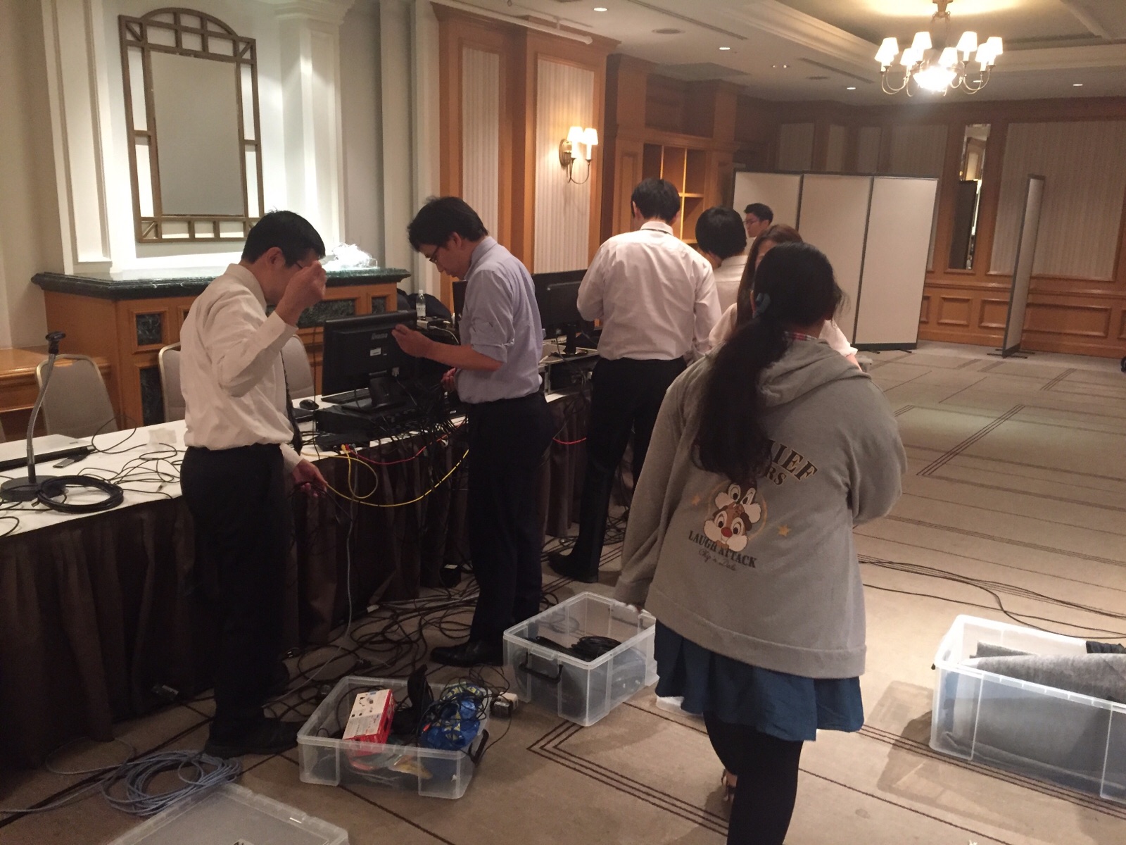 会場後方では映像のセッティング中です。