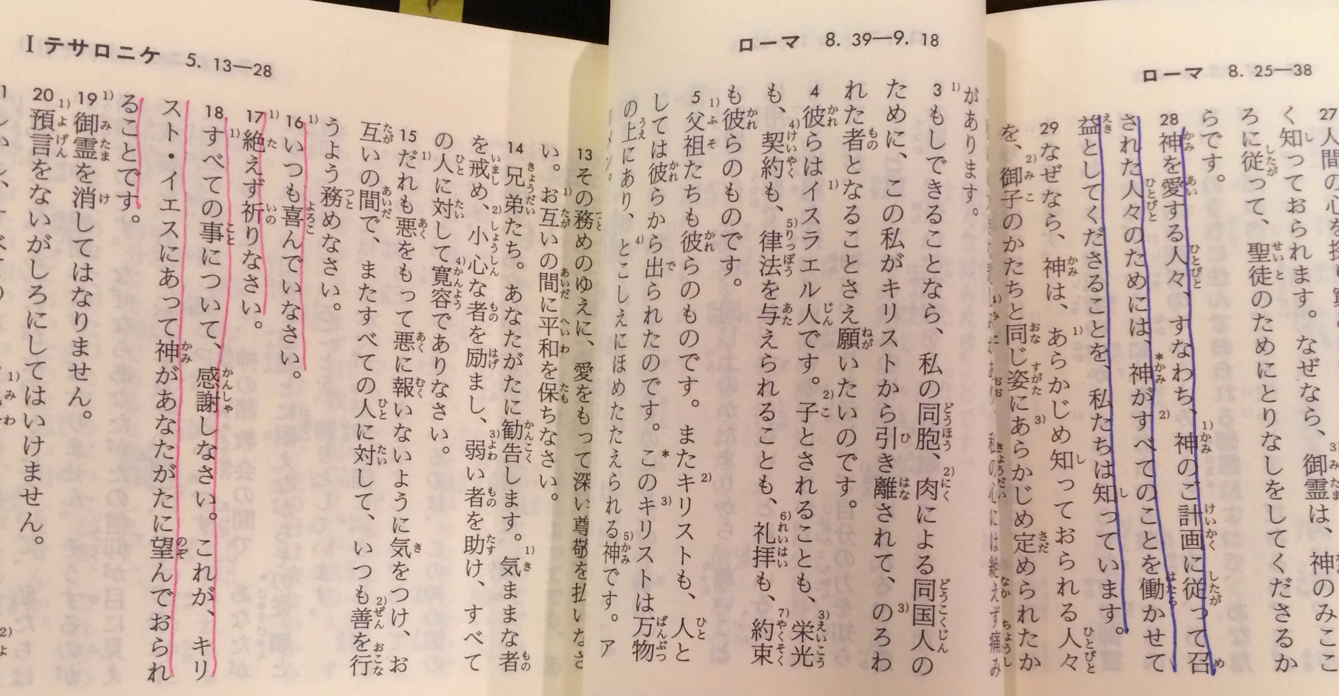 みんな開きグセついてるはず!笑 ローマ:8:28 と テサロニケⅠ:5:16〜18