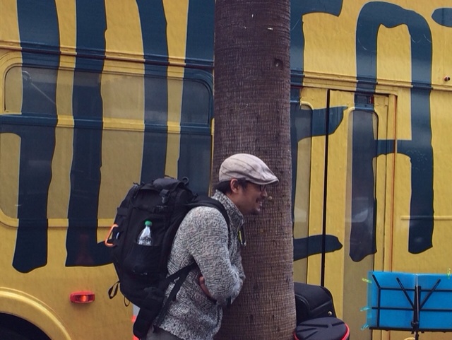 見守るヒロトさん… カメラを向けてたら、ニコッと笑ってくれました〜 ハリウッド路上組