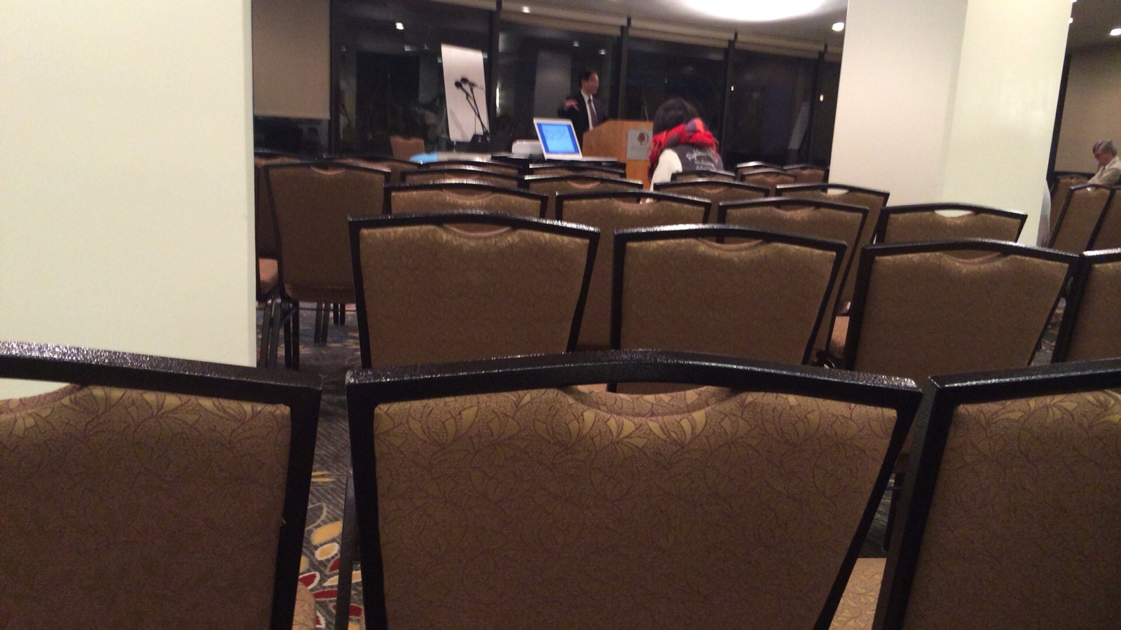 ここ、ガランと空いてます!! スティーブさんたちの席でしょうか?! ドキドキ> <