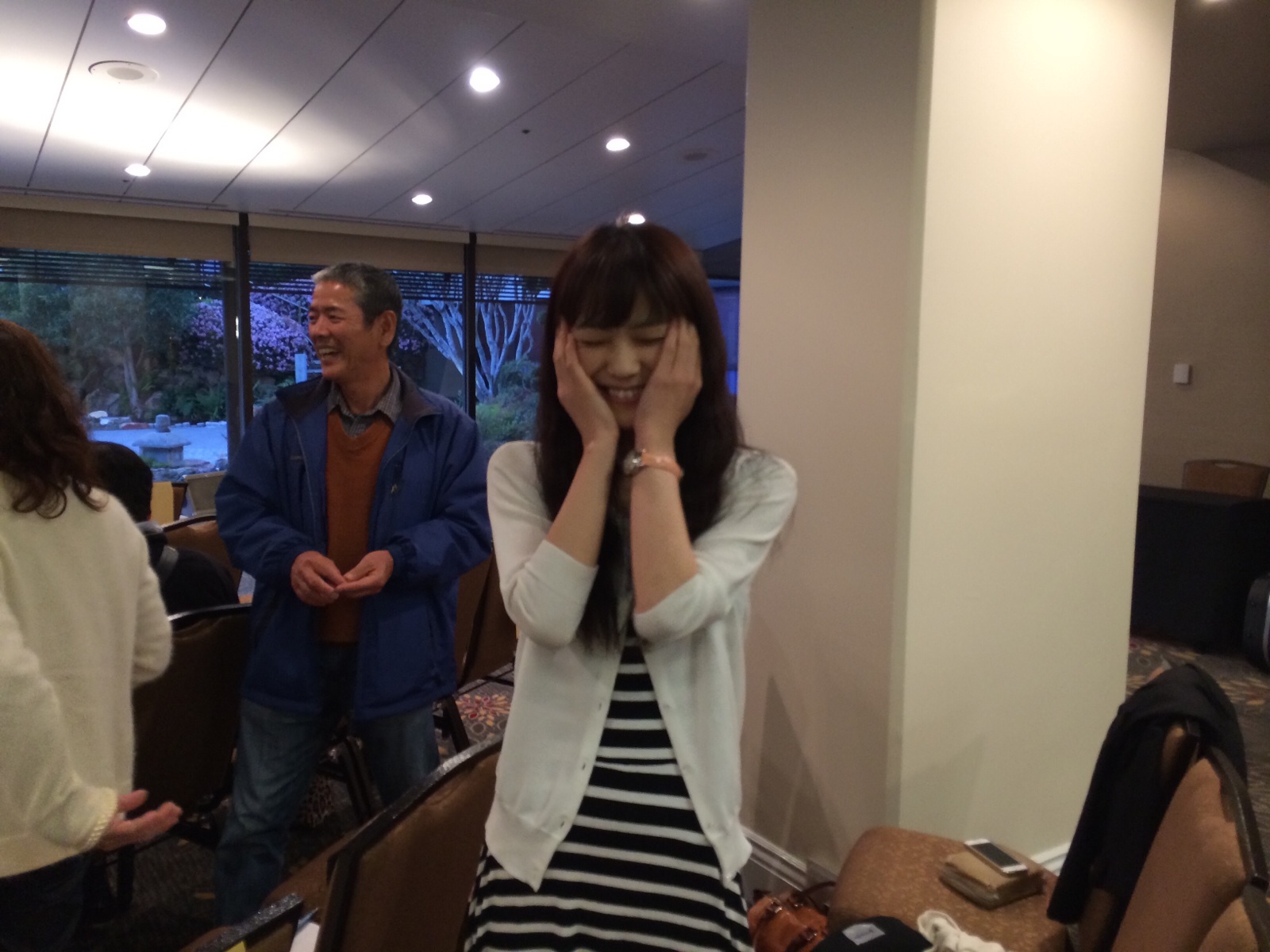 夜の聖会は毎年恒例のじゃんけん大会から。弓野牧師と鈴谷牧師!