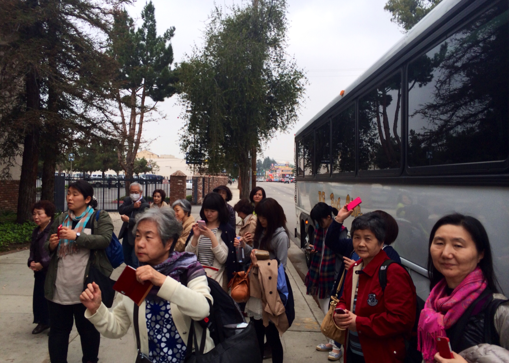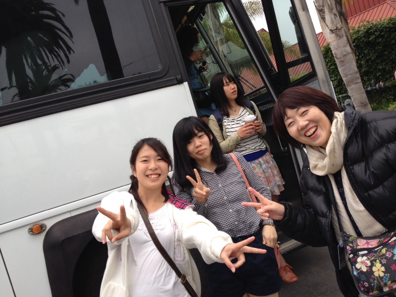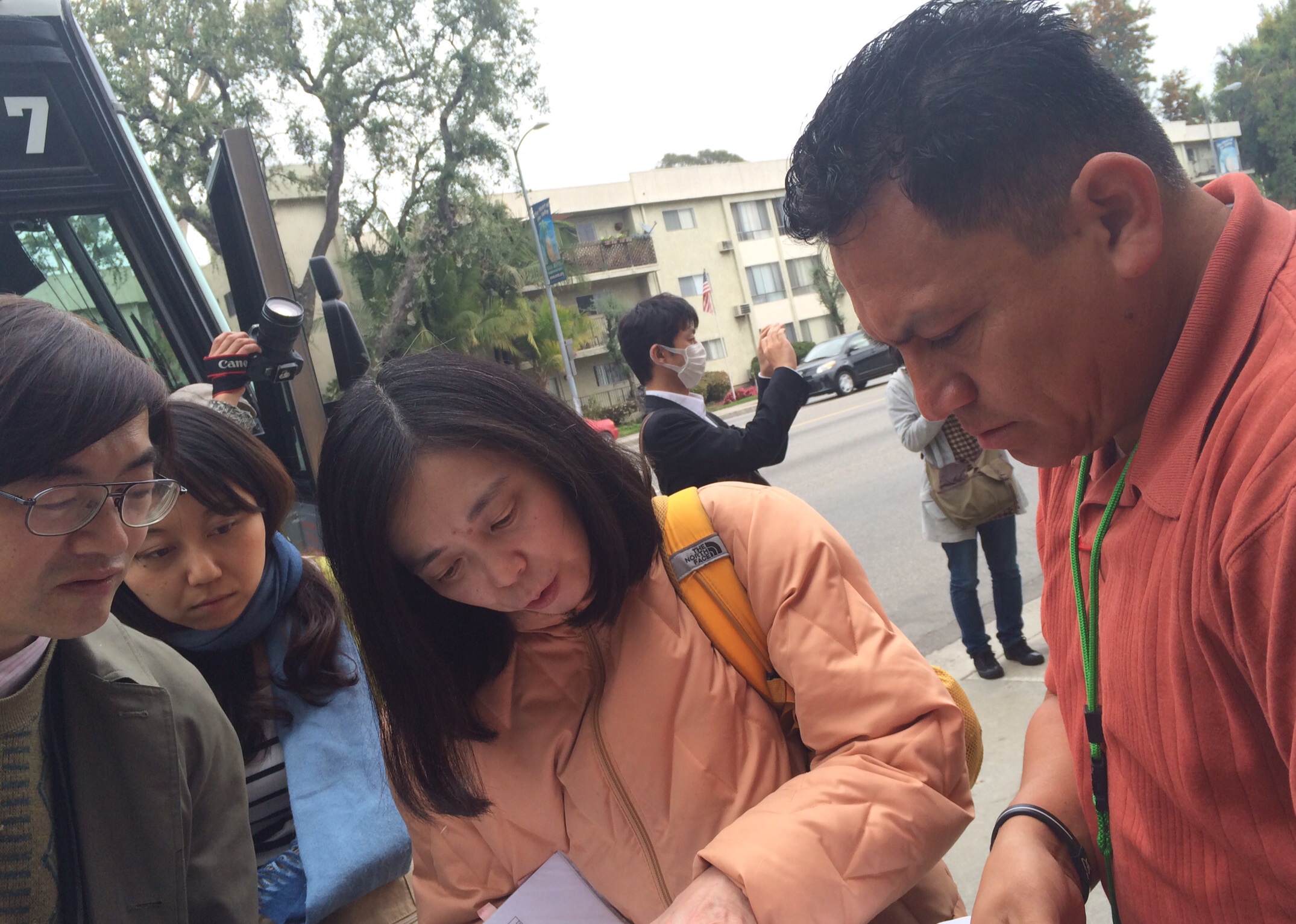 ミッションスタッフのりょうこ牧師が、バスの運転手さん、リカルドさんとお話ししてます。 チャーチオンザウェイ組