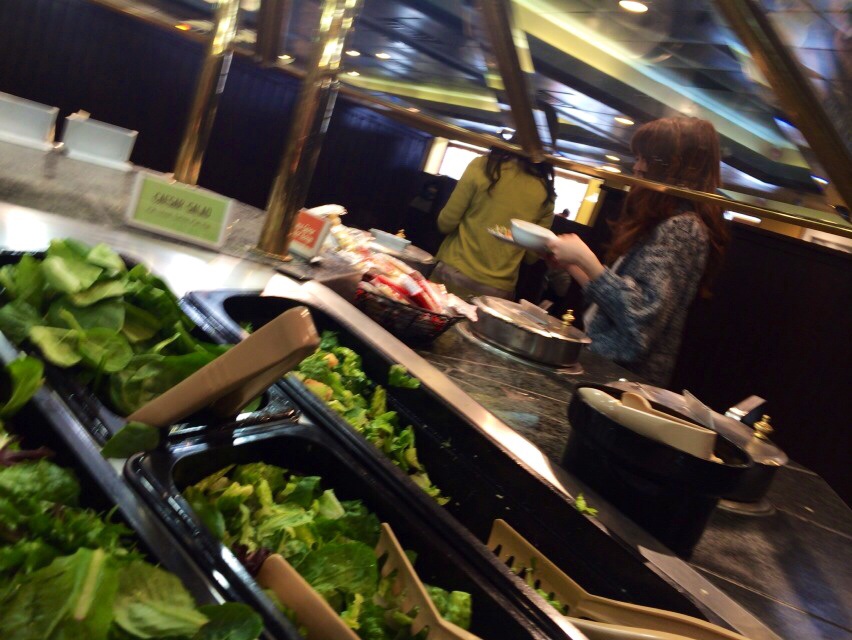 チャチちゃんは、サラダバーだけど、サラダはまだ選んでいないようです( ´ ▽ ` )ノチャーチオンザウェイランチ組