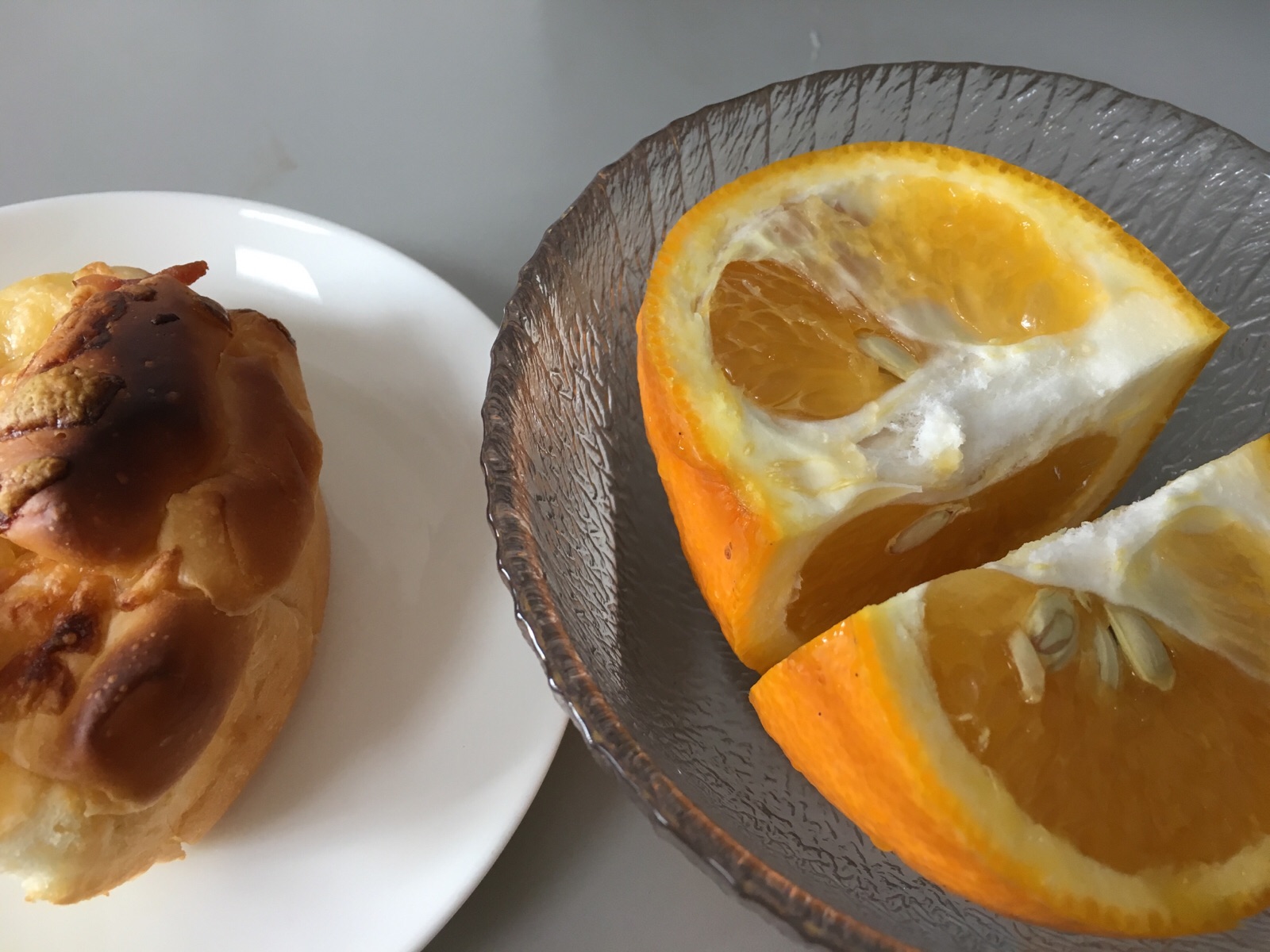 メールチェックした後、ちょっとパンと夏みかんを。 Kayano