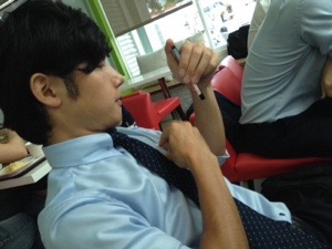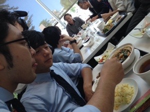 ヨハネくん、海鮮を味見! おいし〜〜〜だそうです。