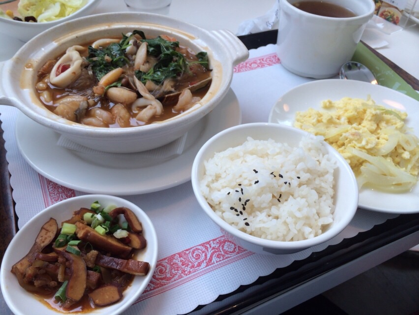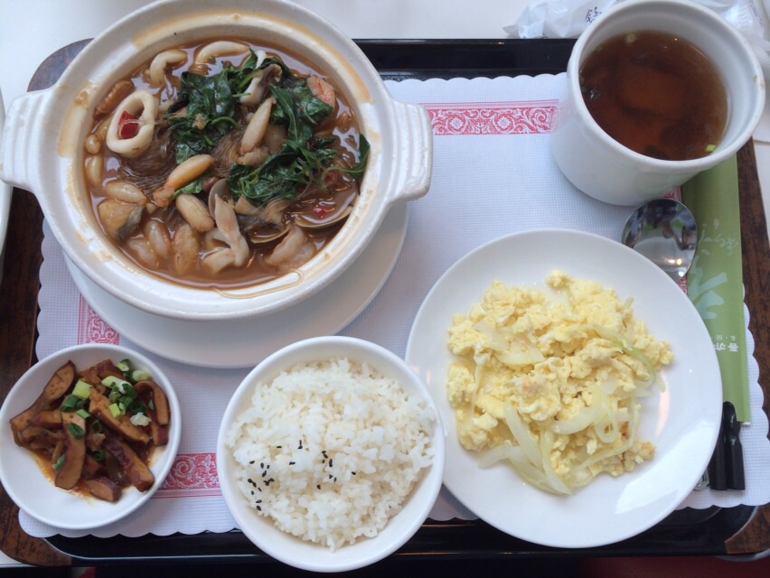 海鮮の辛いのと辛くないのと鳥と牛。 香草が効いてて上手い!