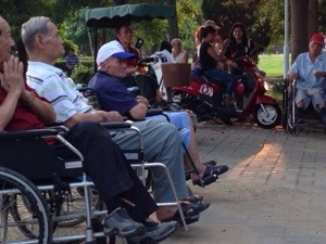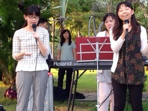 Ms. Aogu who was brought up here in her childhood is interpreting.