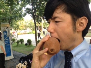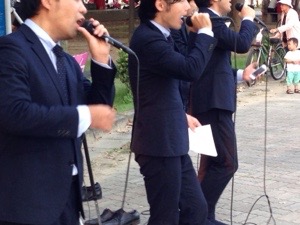 ダンスを歌い終わった時、ギフツにミネラルウォーターの差し入れが現地の人からありました。中央の手を振ってくれているおじさんです。