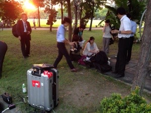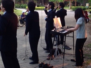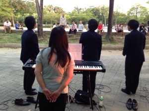 写真に注目。iPhoneや紙を手にしてます。こらは中国語で賛美するためです。努力してます。