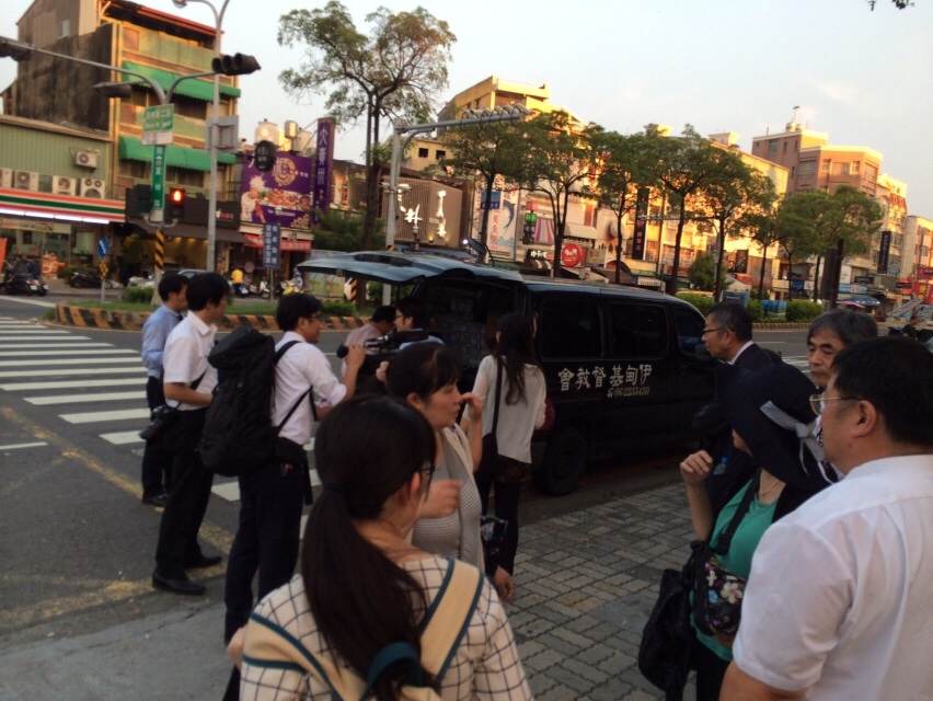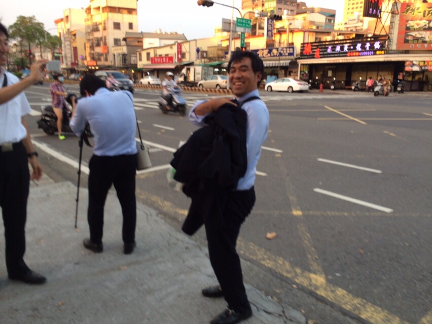 After singing “Dance!”, the local man gave mineral water to Gifts, who is waving his hand in center.