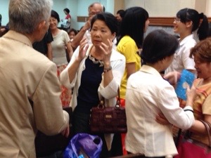 Everyone is glad to meet again with Mr. and Mrs. Ooshige after the congregation finished.