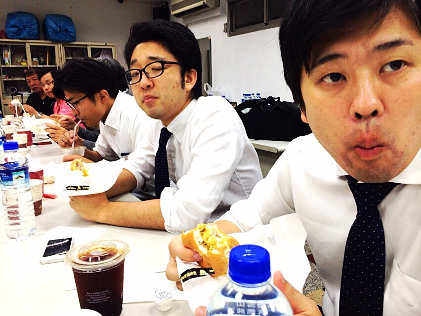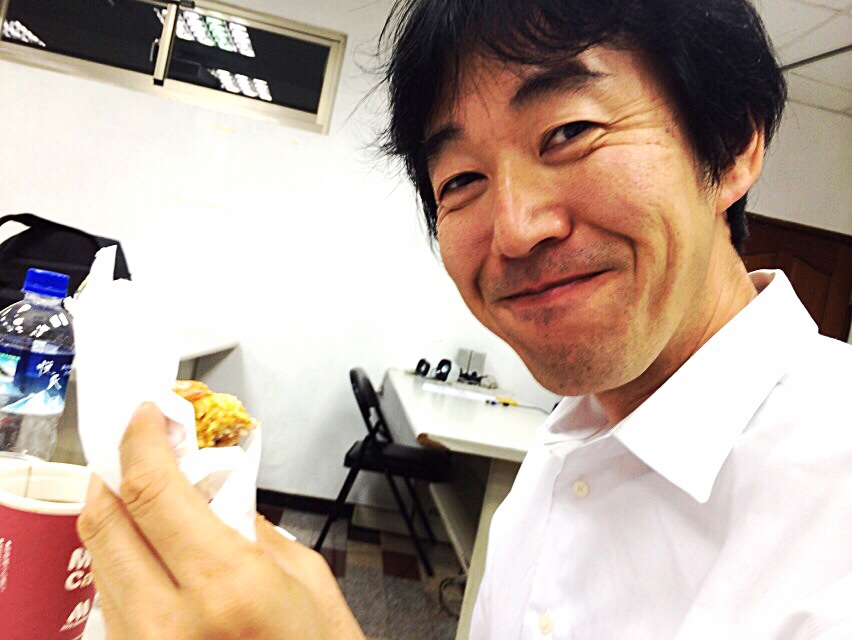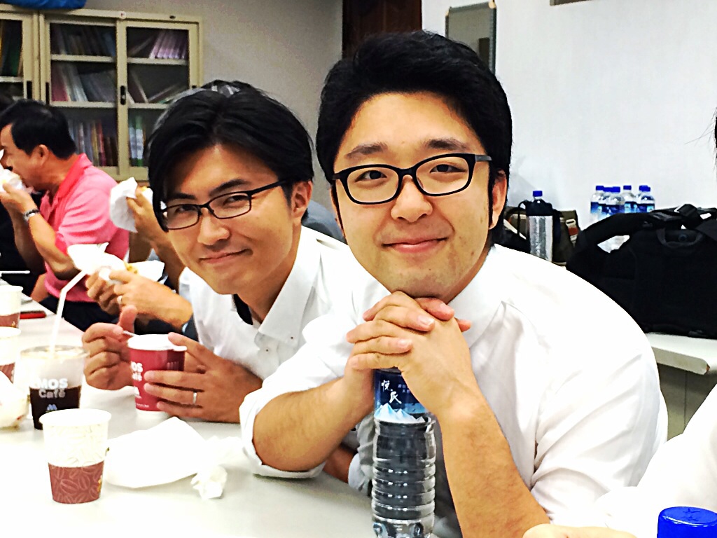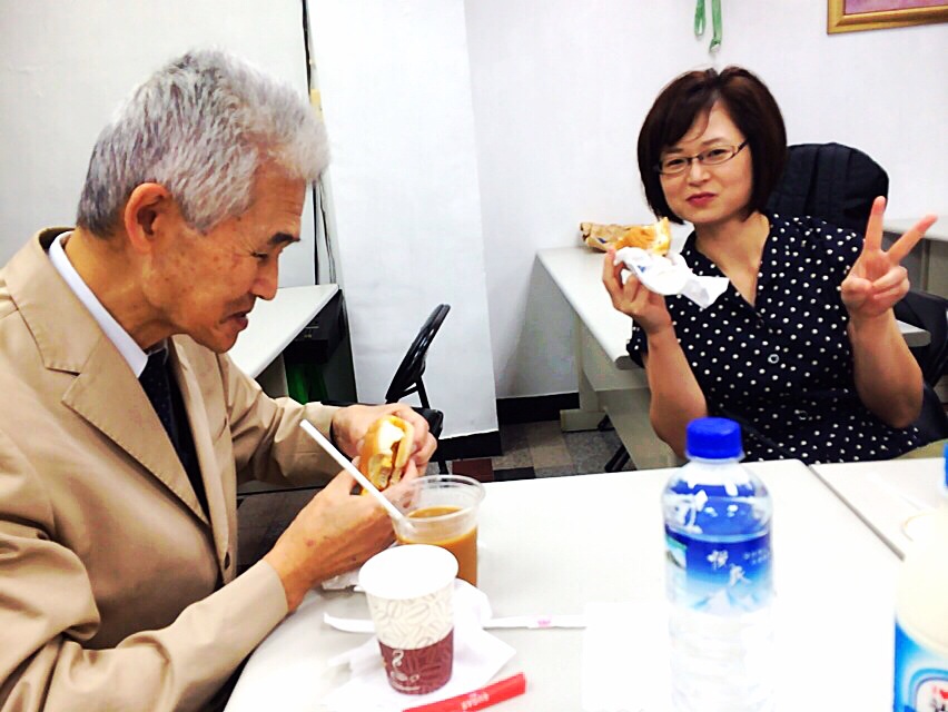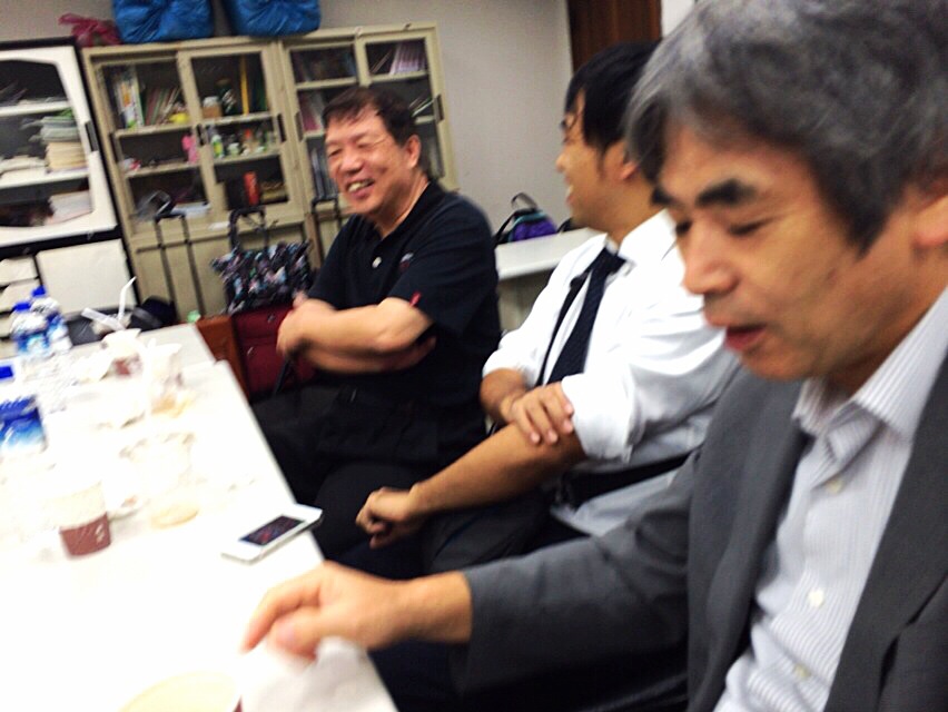 ホテルから秋元さんと永藤さんが来られました。ワン牧師とお話をしています。