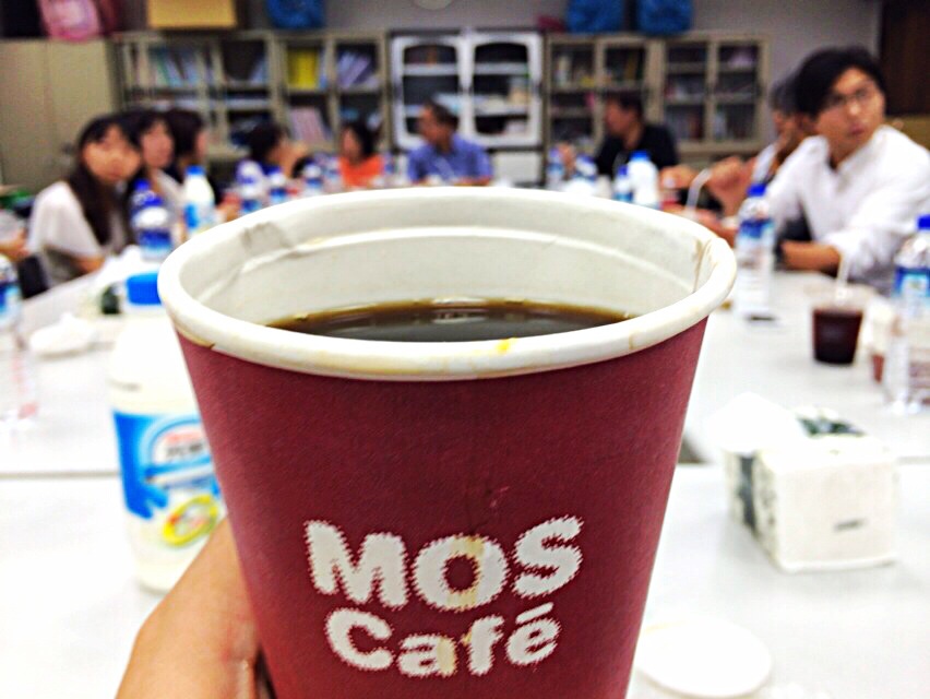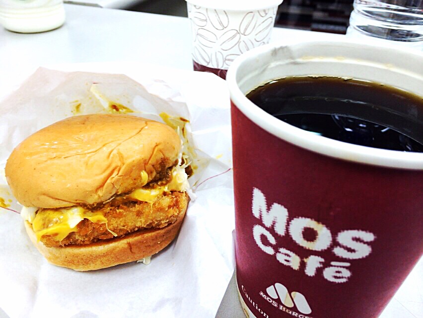 Mos burger and coffee as breakfast! They are entertaining us so much.