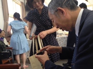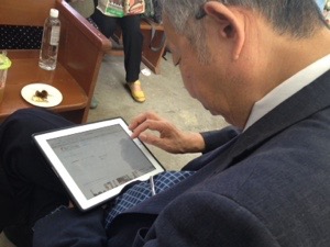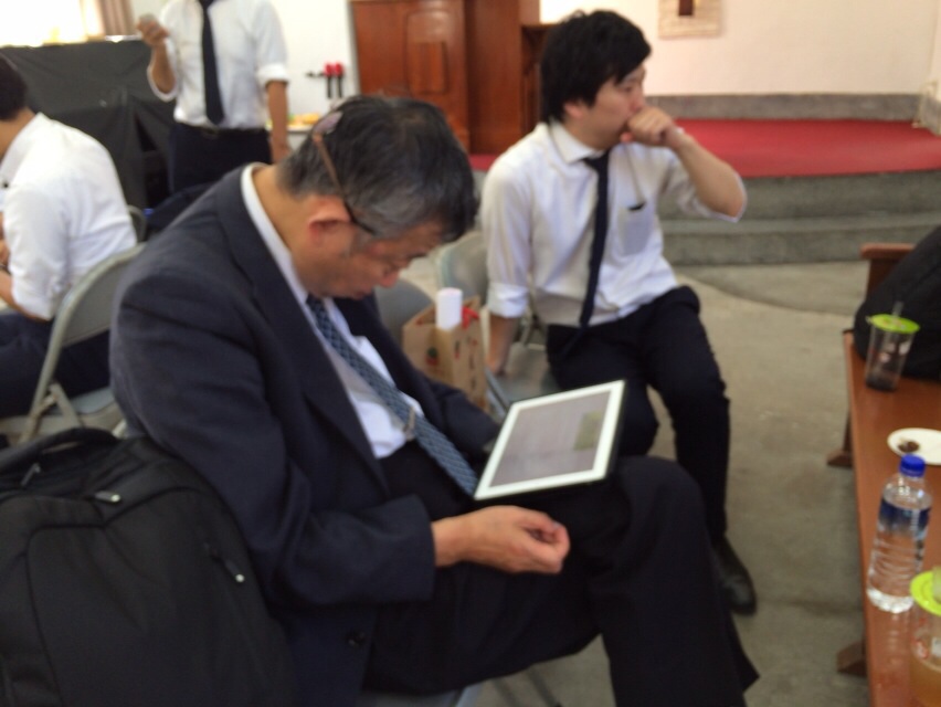 Pastor Akimoto is checking our blogging.