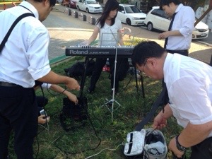 カメラマンとビデオマン。通訳者。ビラ配り。PAのサポーターたち。
