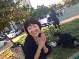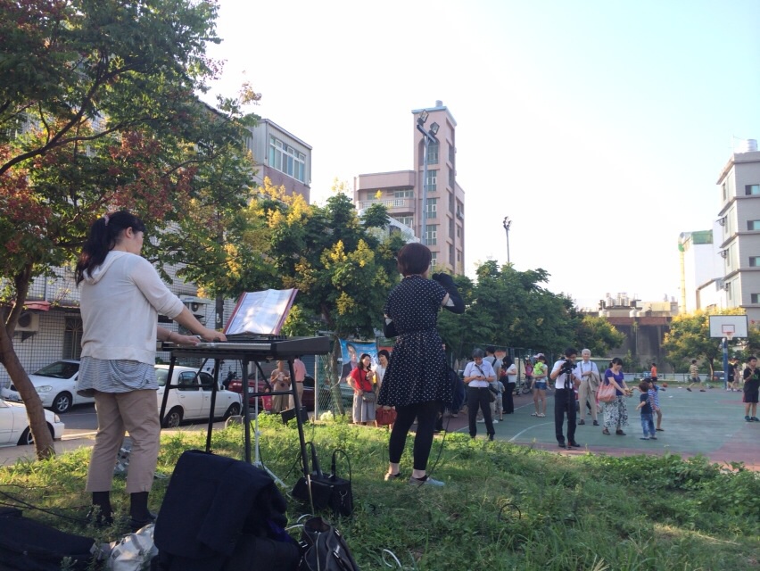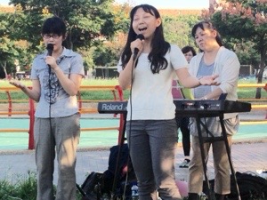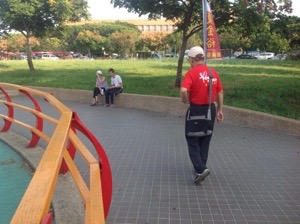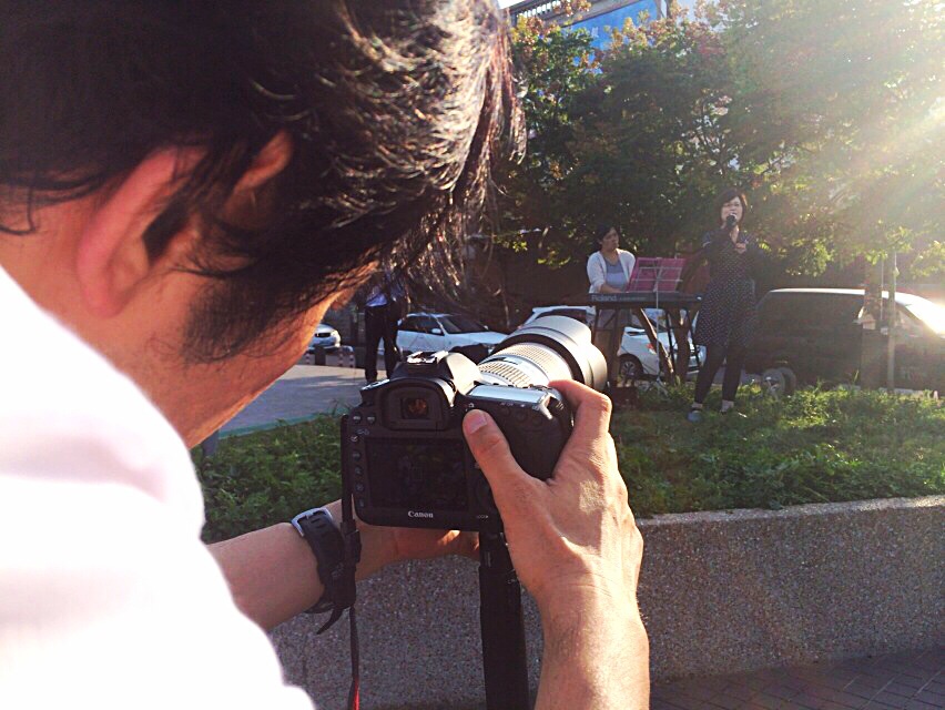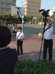 Photographers, a videographer, an interpreter, a deliver and a PA system staff and supporters.