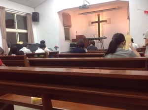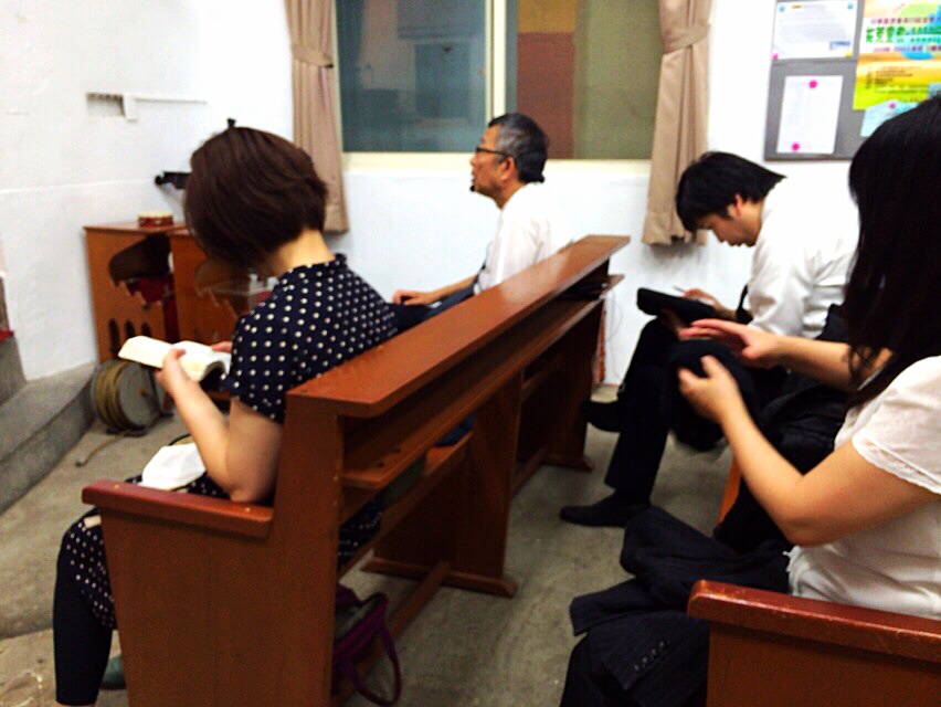 礼拝前、皆さん静まってお祈りしています。
