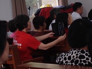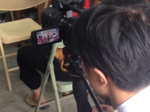 ワン牧師夫人は映像を撮っています。