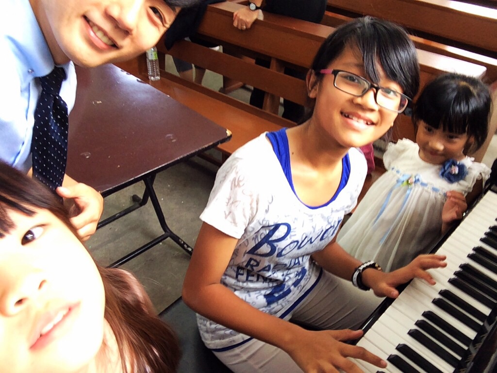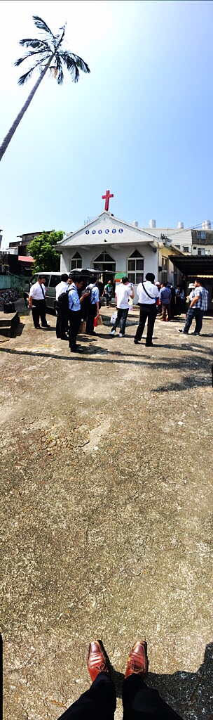 ヤシの木と教会正面。 ※画像タップで原寸大