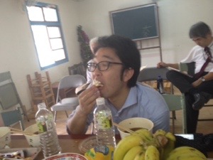 デザートにケーキを食べるヨハネくん! 美味しそうに食べるのを見て何か食べたくなってきました。