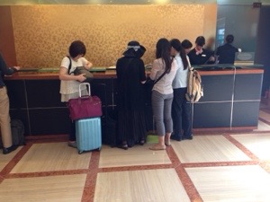 ミッションのメンバーがフロントで部屋の確保などをしてくださいます。感謝。