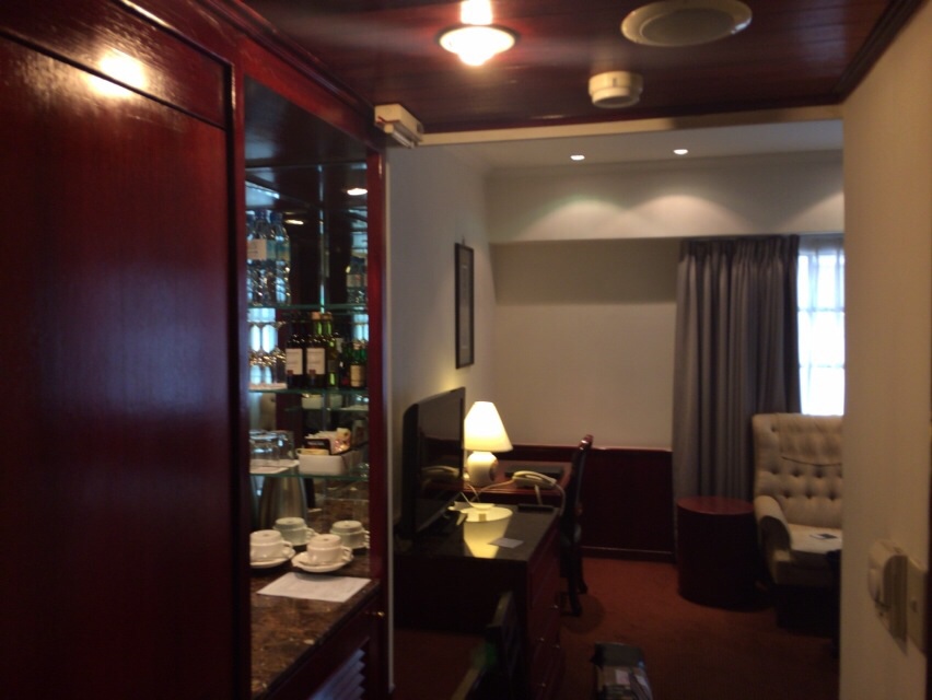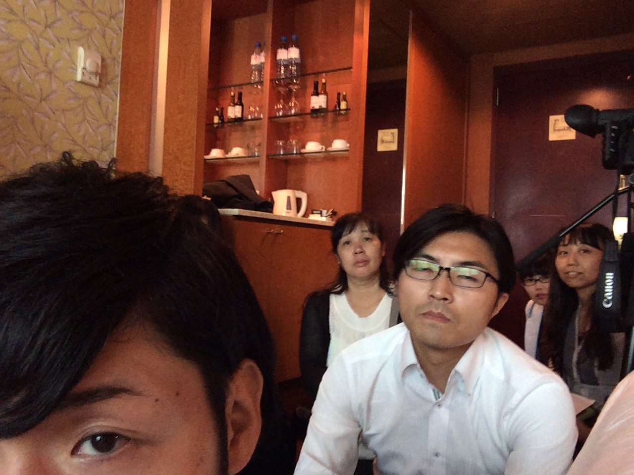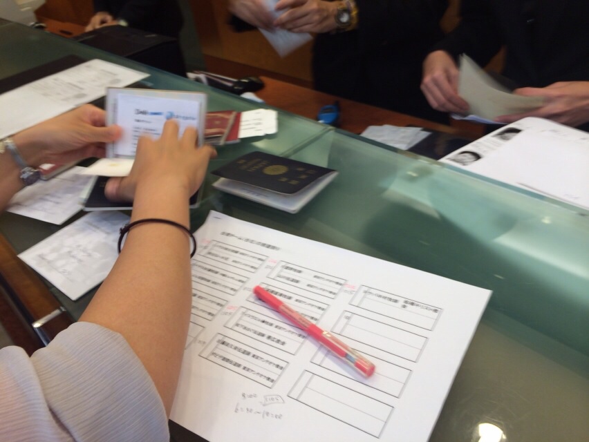 ホテルのスタッフさんが慎重に確認しております。集合時間まであと7分。