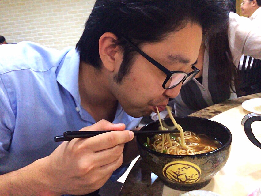 牛肉麺。香草が効いた辛めラーメン。めっちゃ美味い!ヨハネくんが残りを食べてくれました。