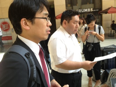 午後に備えて、ドルビーシアターの前で練習中のキブツ。