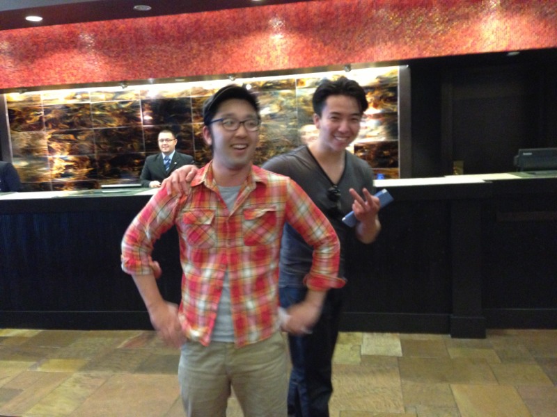 ヨハネさんと、けんちゃんさん(笑)は今から夕食に!明るいお二人につられて、ホテルのフロントスタッフの方が一緒にカメラに向かいポーズしています!