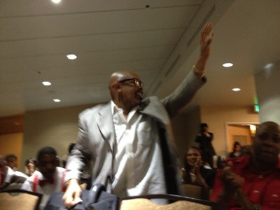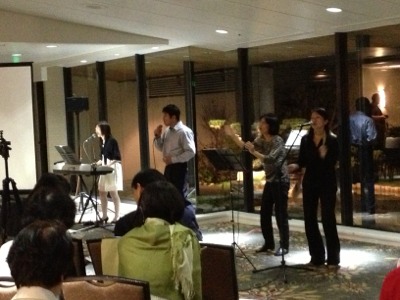 会場奥の一角はノルウェーの皆さんです。 ロサンゼルス教会のKing’s childrenの賛美に手拍子が起こっています。