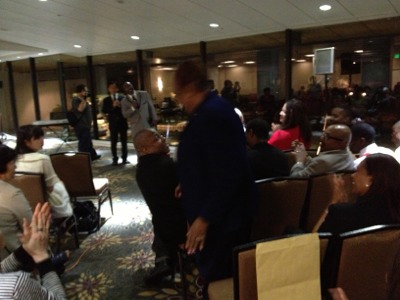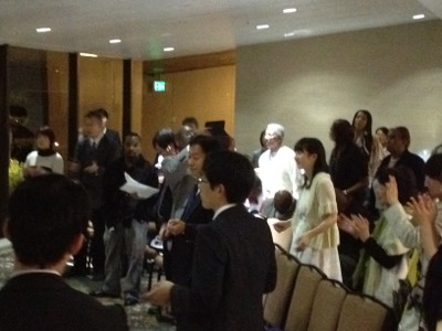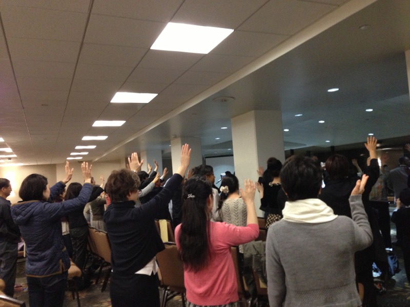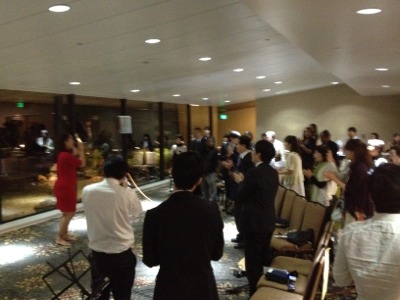 みなさんも立ち上がって賛美しています。